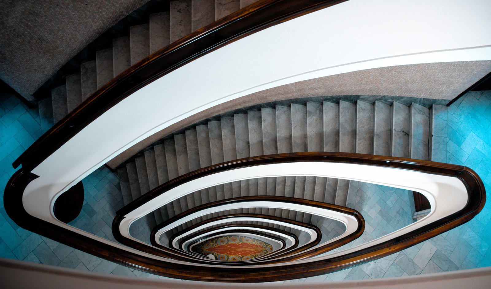 Elliptical staircase of an ancient building located in via XX Settembre in Genoa, Italy.