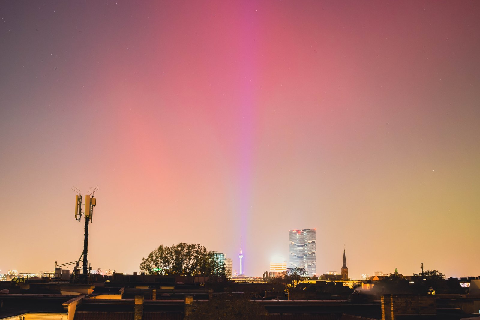 During the Berlin Festival of Lights on October 10th, 2024, the Northern Lights and the Festival of Lights had a dramatic night together as mother nature showed off her lights over Berlins sky and many other city's around the world that night.