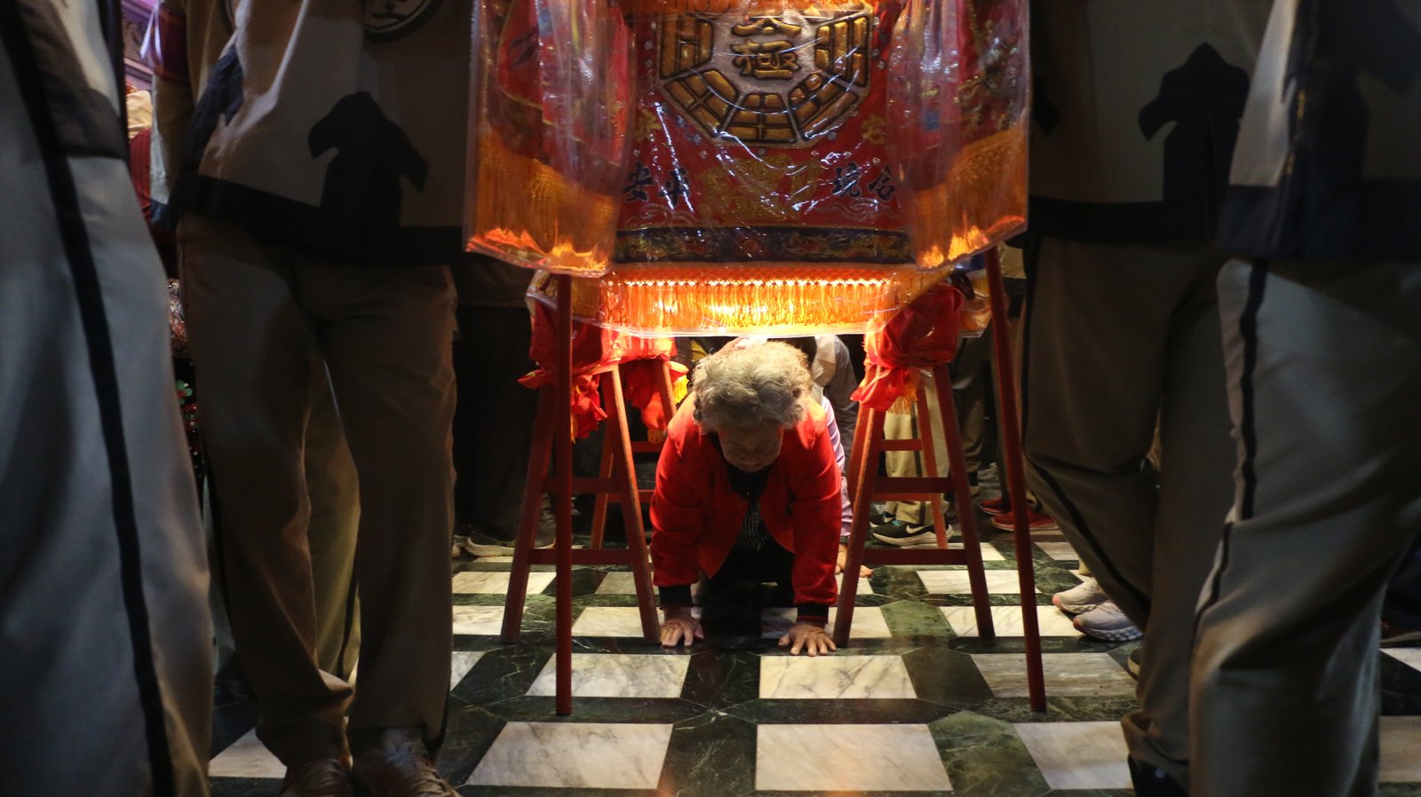 大甲鎮瀾宮九天八夜由台灣中部起駕,沿途有來自全國各地信眾追隨在側,其中駐駕雲林縣西螺鎮廣福宮老大媽祖廟,讓虔誠的信徒鑽過鑾轎下,虔心朝拜,庇佑國泰民安,風調雨順。