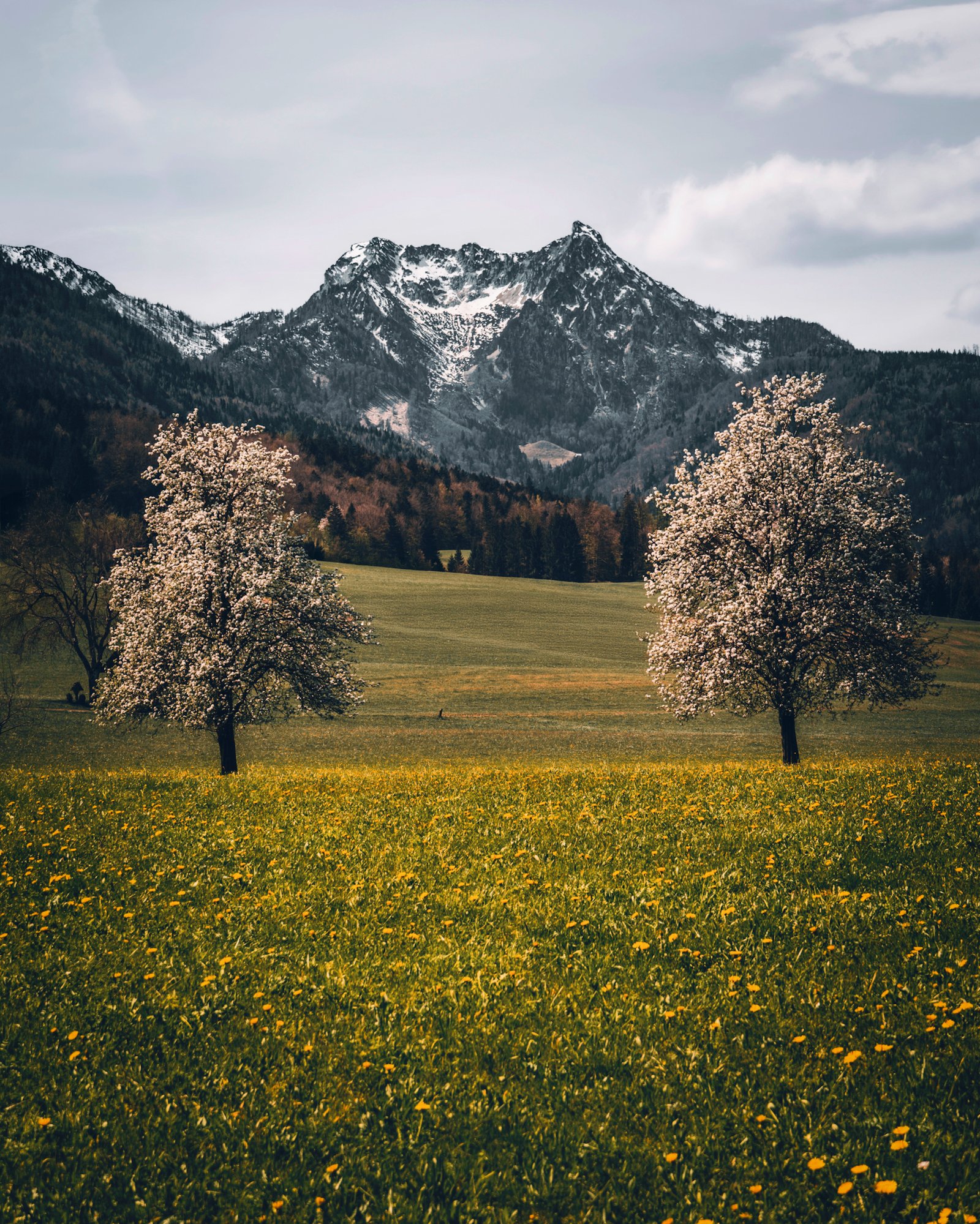 Spring awakening in the Lindau in Bad Ischl - with a view of the majestic Bergwerkkogel and the Rettenkogel. Blooming fruit trees, lush green meadows full of dandelions and in the background still snow remnants on the summits - this is how spring in the Salzkammergut shows its most beautiful side.