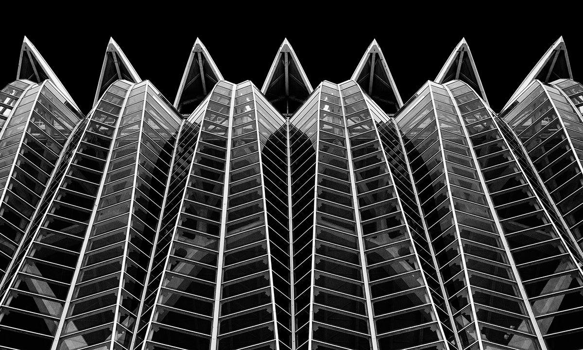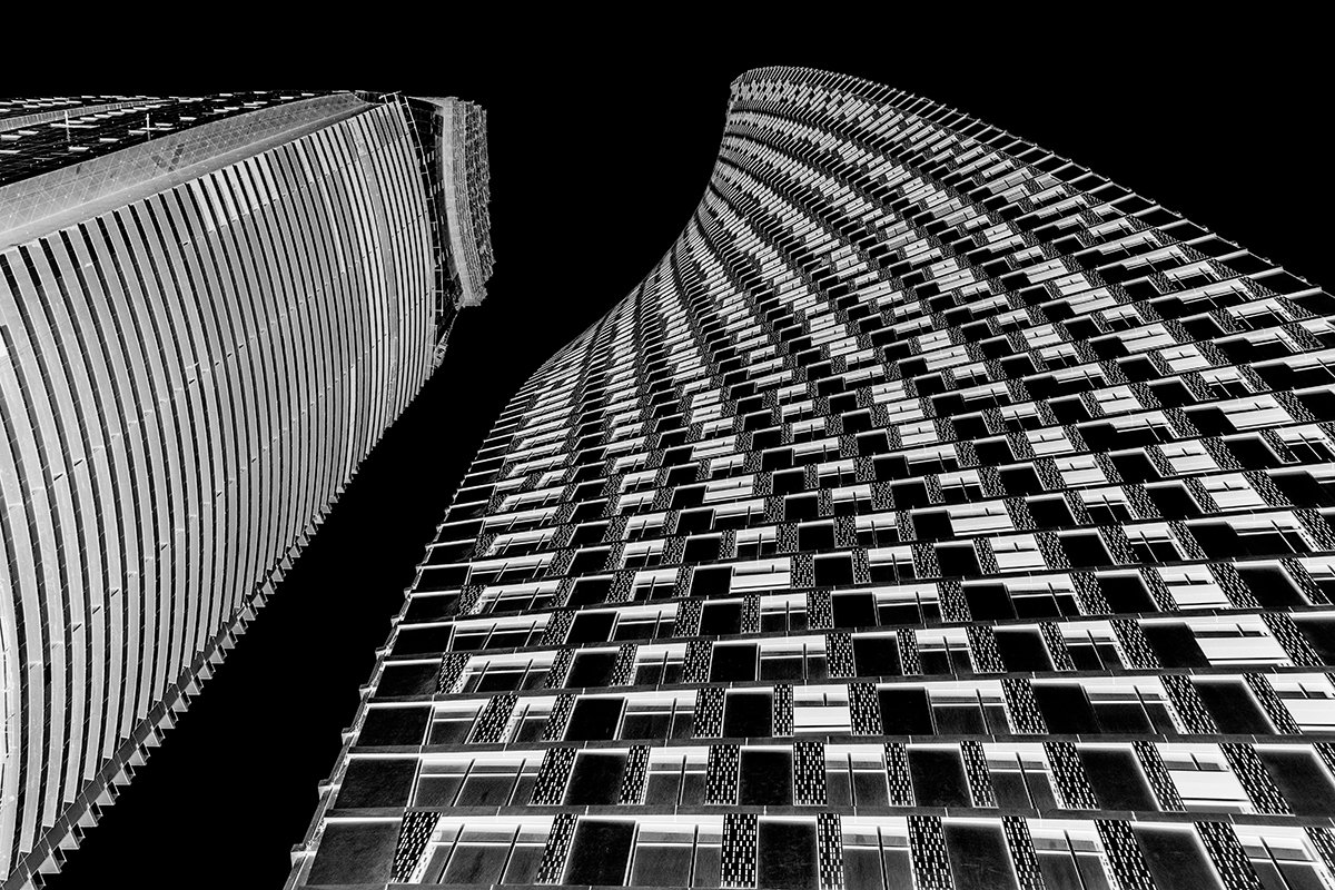 “BLACK SKIES,” initiated in 2014, is an evolving project that will ultimately consist of no fewer than 50 works representing contemporary architectures and their details. The black sky serves merely as the background, enhancing the power of lines, definition, and movement, exacerbating the rationality of form and structure to focus the viewer’s attention on the exaltation of the purity of architectural lines, in a kind of metaphysical vision.