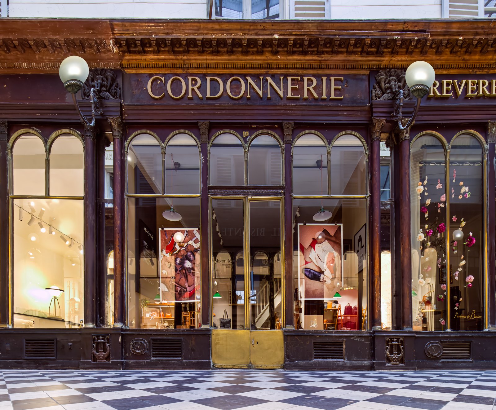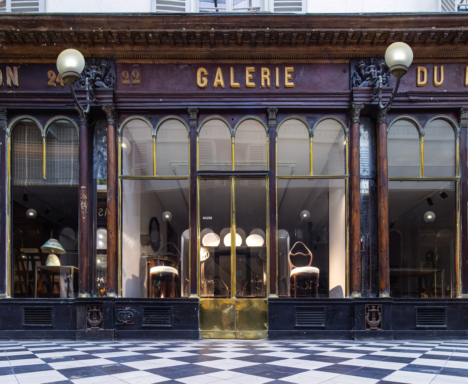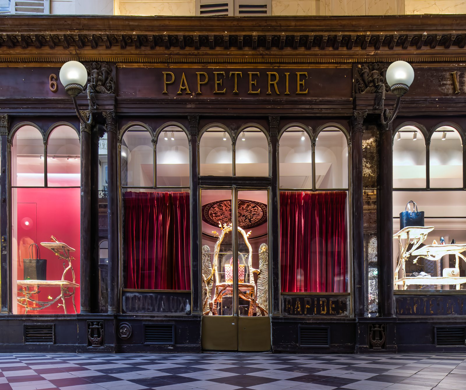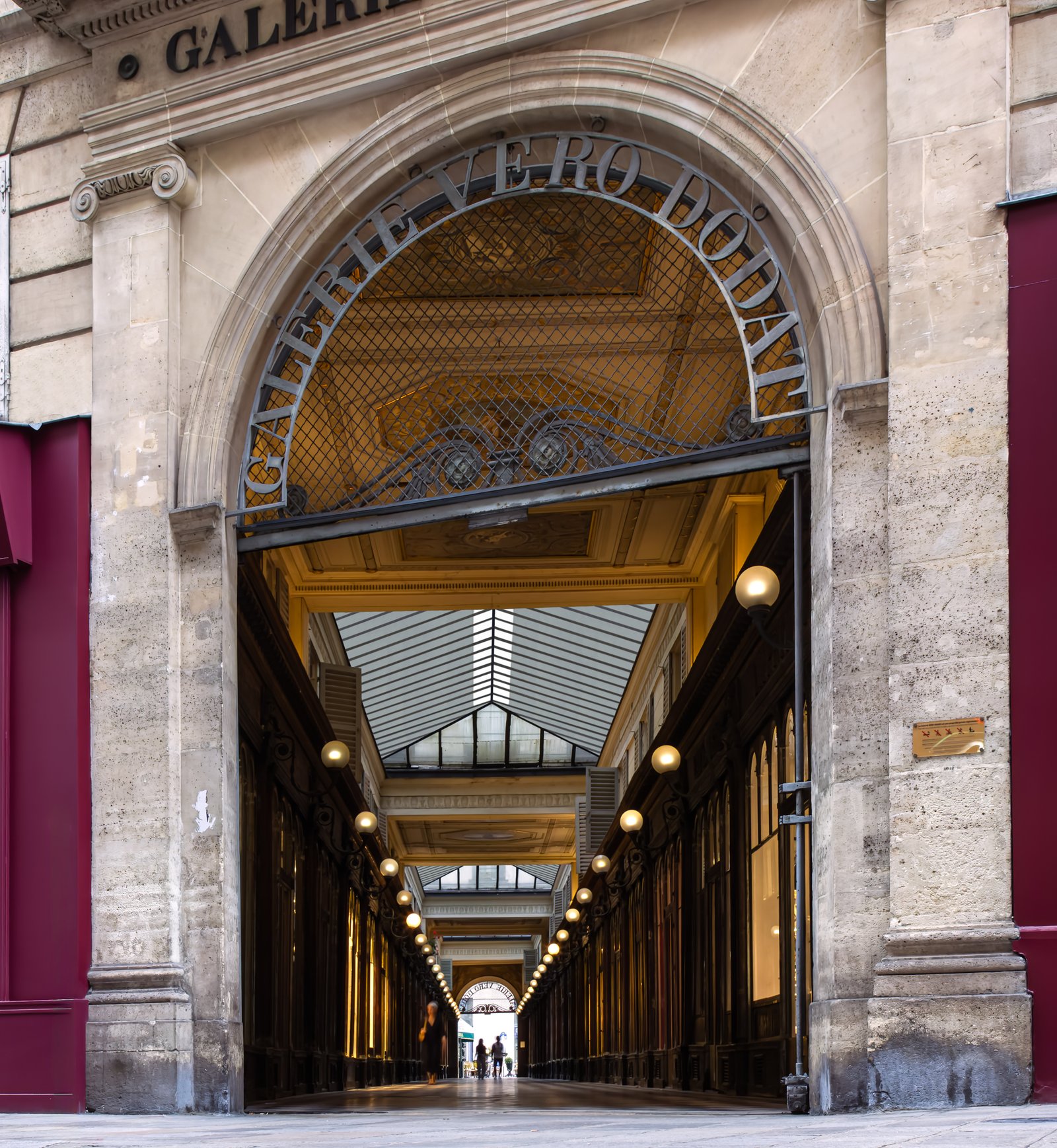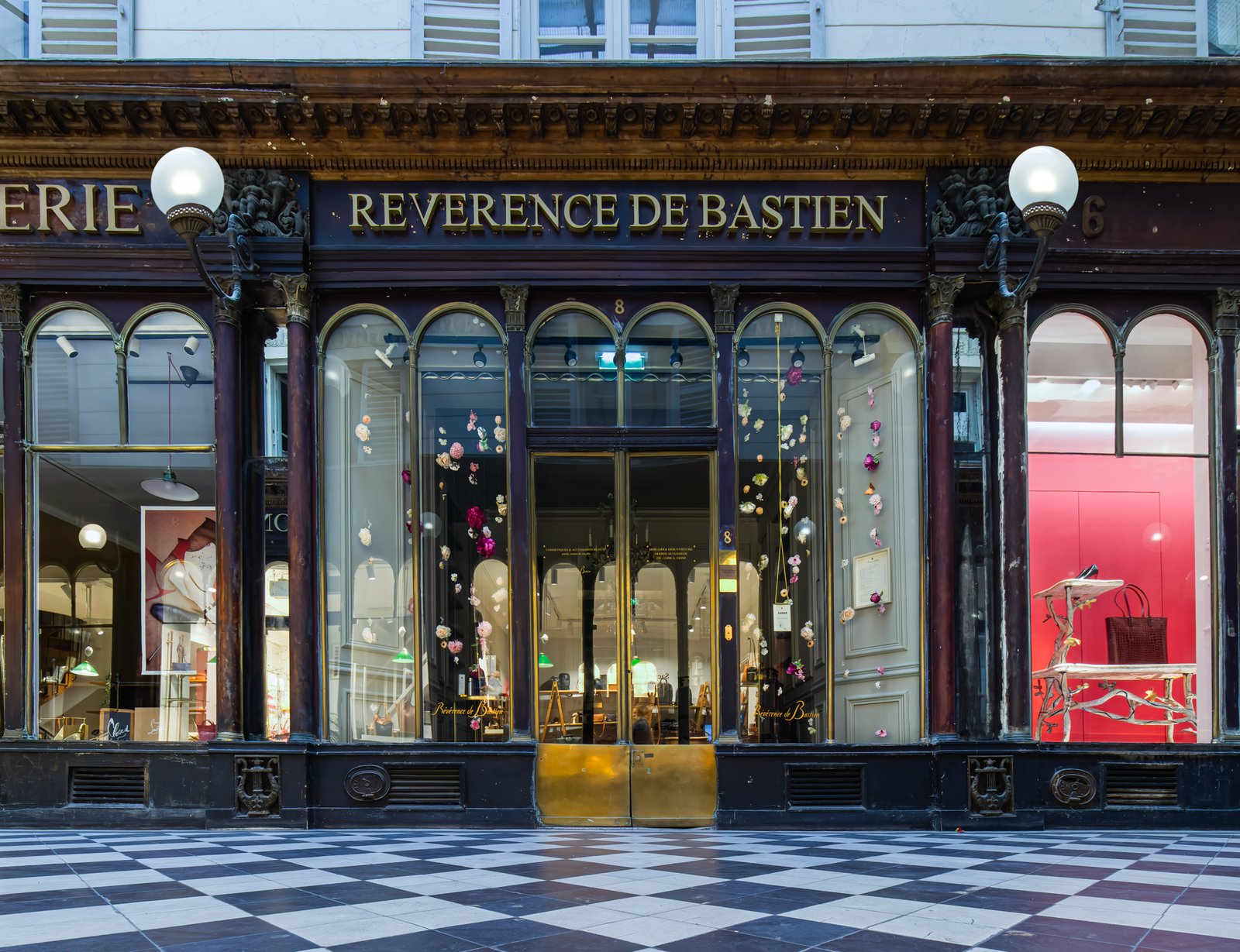 Galerie Vero-Dodat was built in 1826 by Benoit Vero and Francois Dodat. Located between the Palais-Roya and Les Halles, it offers a flash into a gone-by era of elegance. Covered passages were in vogue at the time. There were more than 150 all over Paris. Today, only 18 passages remain.[1] Galerie Vero-Dodat is 80m long and 4m wide. It became a landmark in 1965, and it was restored in 1997 to its former neoclassical grandeur. The shops are adorned with identical arched windows and lanterns. Dark wood is decked with copper iron, mirrors, painting and columns. Perfect place for “faire du leche-vitrine”.