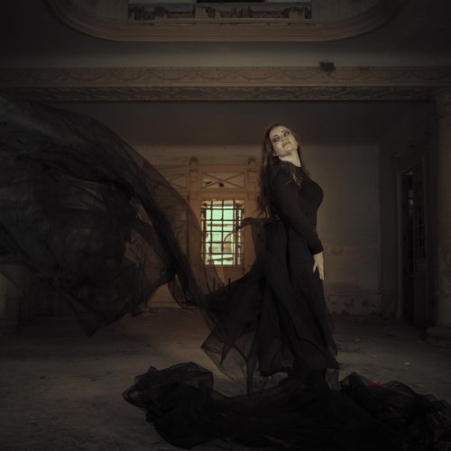 This image captures a profound moment in the vast blue ocean, where human and dolphin gracefully coexist. The deep blue expanse emphasizes the silence and wonder of the underwater world. It speaks to the shared space and the rare, beautiful connection possible between different species. A testament to nature's tranquility and harmony.