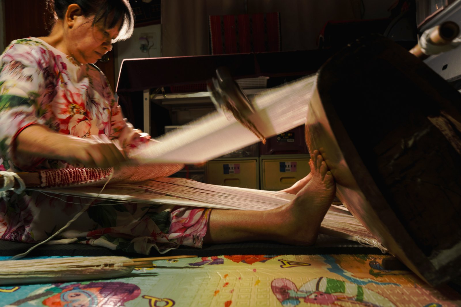 This is a photographic series that offers a focused gaze into the traditional weaving craft of Taiwan’s Indigenous peoples. The subject is a Seediq woman artisan whose weaving journey has spanned over 25 years. Through the interaction between her body and the loom, she enacts a long-standing and ongoing cultural practice—one that becomes a site where collective history and personal identity converge. Weaving, for her, is not merely the continuation of a domestic skill, but a profound way of understanding selfhood, ethnic belonging, and the passage of time. Within these images, culture is remembered, reborn, and sustained through her labor. Every movement, every rhythmic step of her foot on the loom's pedal, becomes a response to the ancestral call. These photographs also reveal the pressing challenges faced by this traditional practice: the rupture across generations, the accelerating forces of modernization, and the weight of solitude borne by those who carry the responsibility of cultural preservation. Through the lens, viewers encounter a resilient voice emerging from the margins—a visual response to the question: how does one remember history with the body, before it disappears into oblivion.