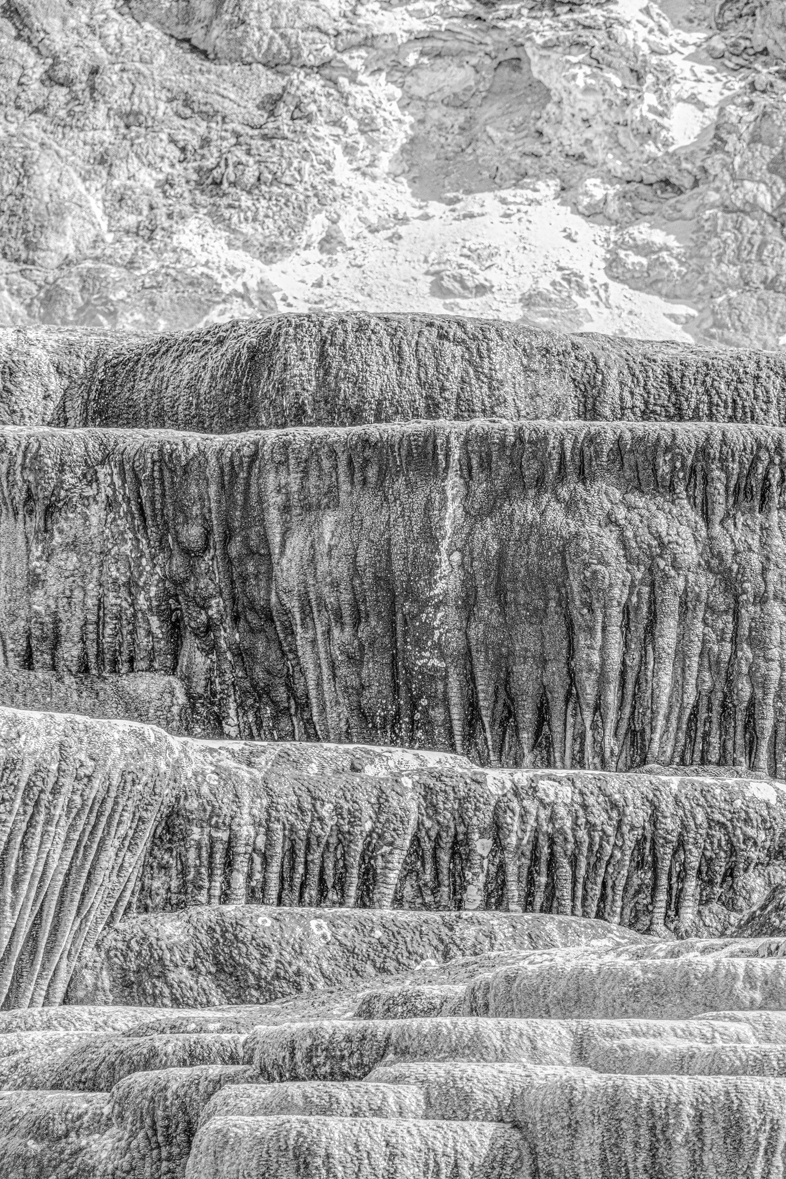In this sculpted terrain of Mammoth Hot Springs, time leaves its trace not in ruins, but in rhythms. Layer by layer, water and mineral etch a silent architecture — a dream the earth keeps building.