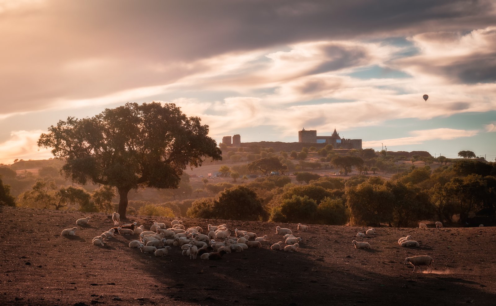 Situated on the left bank of the Guadiana River, high above the town of Mourão, the Castle of Mourão is a striking example of tenacity and history spanning centuries. The castle, which was first constructed in the 14th century on top of earlier fortifications and medieval foundations, stands as a silent guardian over the Alentejo. Alentejo was in July, the height of summer, when most tourists steer clear of the area because of the unrelenting heat. Our hotel felt like an island in a vast expanse, almost encircled by one of the biggest man-made reservoirs in Europe. One morning, as I walked across the field to watch the sunrise, I could hear the sweet sounds of sheep bells. I followed the sound until I came to a calm scene with Castelo de Mourão in the distance. A solitary sheep moves toward its herd beneath a tree. Little dust particles are visible, catching the light. One hot air balloon, a well-known sight in Alentejo, is visible above me in the distant horizon. The strange peace is emphasized by the soft hissing of its burners. This was Alentejo—unexpected, timeless, and incredibly moving.
