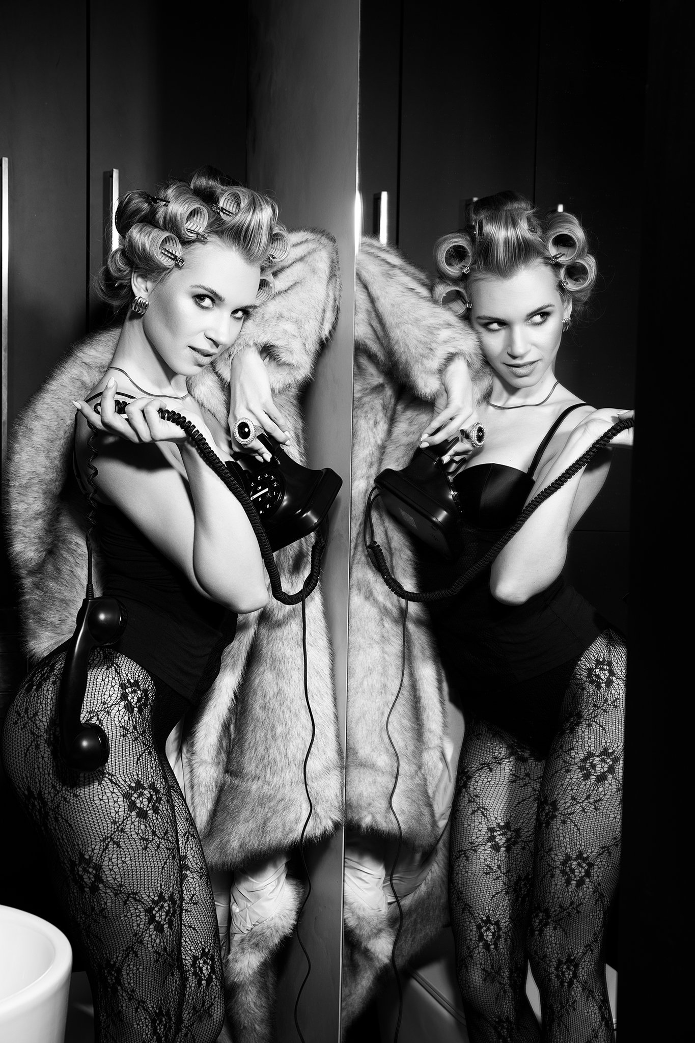 The cord wrapped around her fingers like a silent vow. The receiver swayed, caught between longing and hesitation. The line was quiet, yet she felt the presence on the other end. Sometimes, desire isn’t in words—but in the pauses between them, in the touch of lace, in a glance never returned.