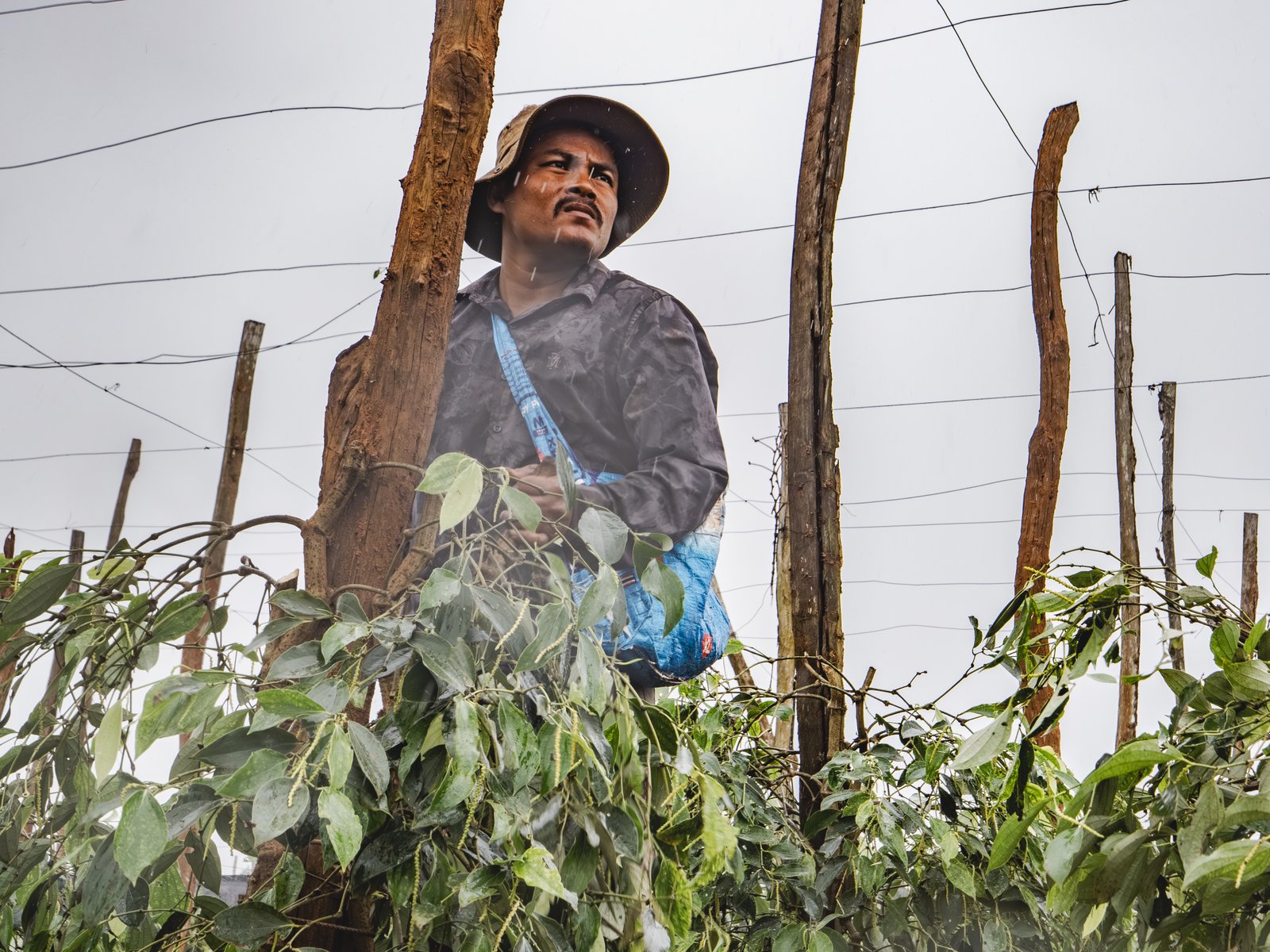 Pepper farmers working in Kampot, Cambodia. Photographed in the pepper fields during the rainy season. Thanks to their careful work, we can enjoy high-quality Kampot pepper. I took this photo with gratitude.