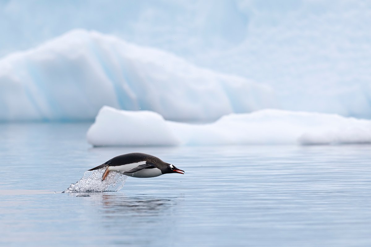 This is just so hard to capture as the penguins can porpoise anywhere on the surface. It is a matter of trial and error.