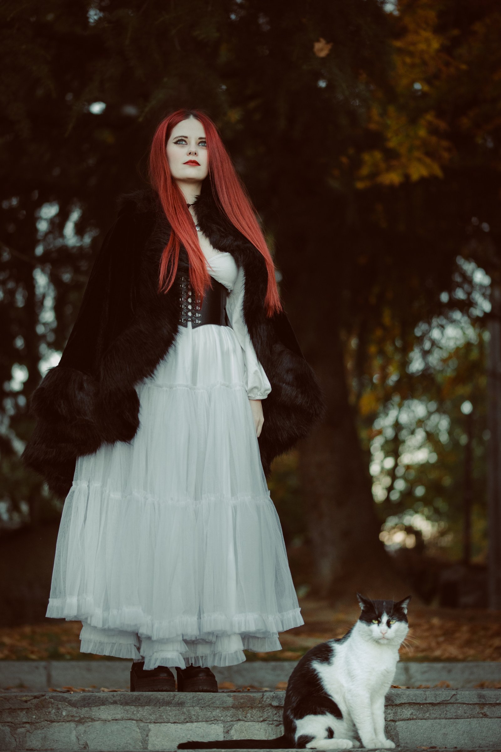 During a brand photoshoot in Edessa,Greece, a identical coated cat came into the scene and sit in front of the model.