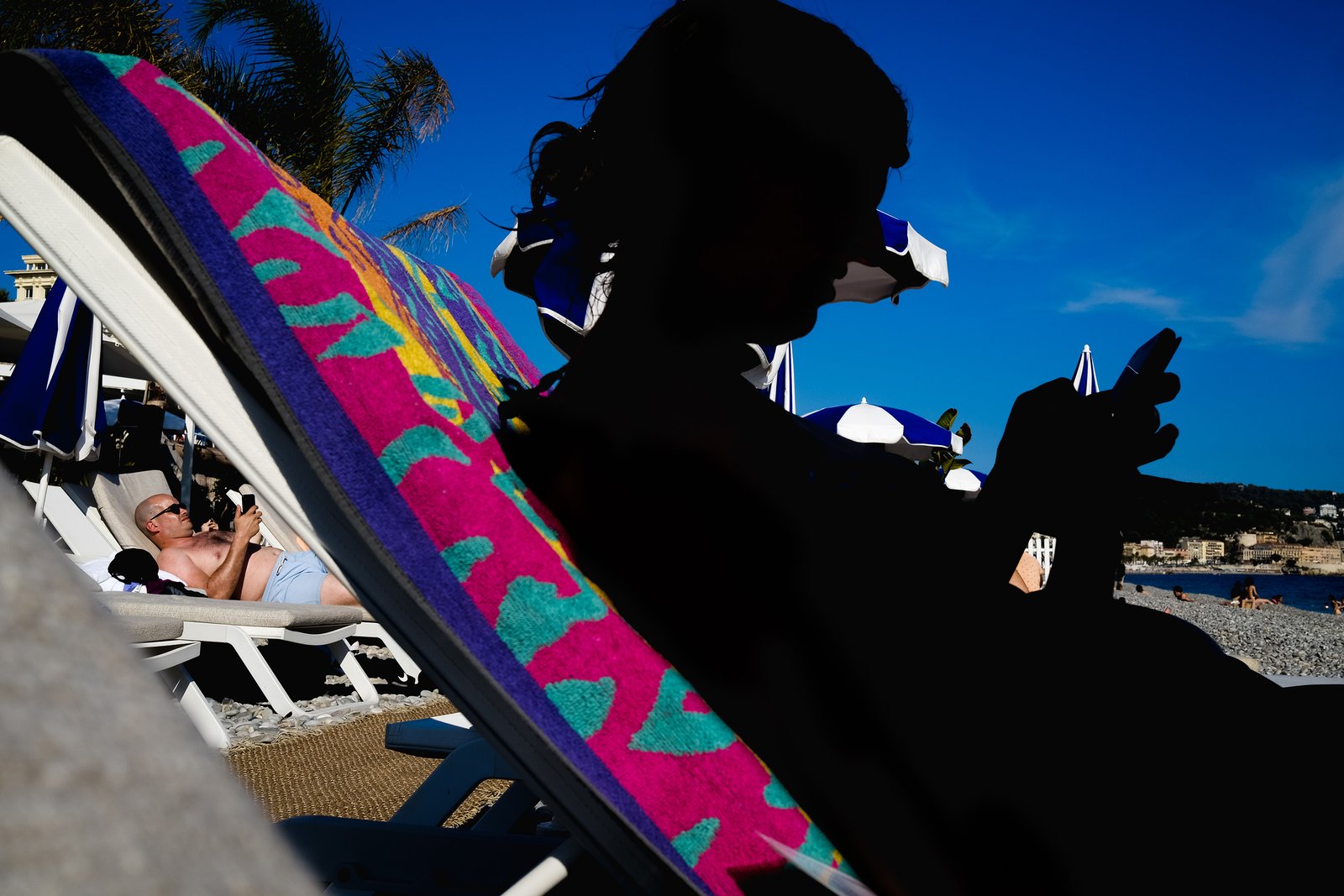 Social media is an image showing how social media is taken over our lives. Even in a place we used to go to relax we are constantly on our phones instead of enjoying the moment.