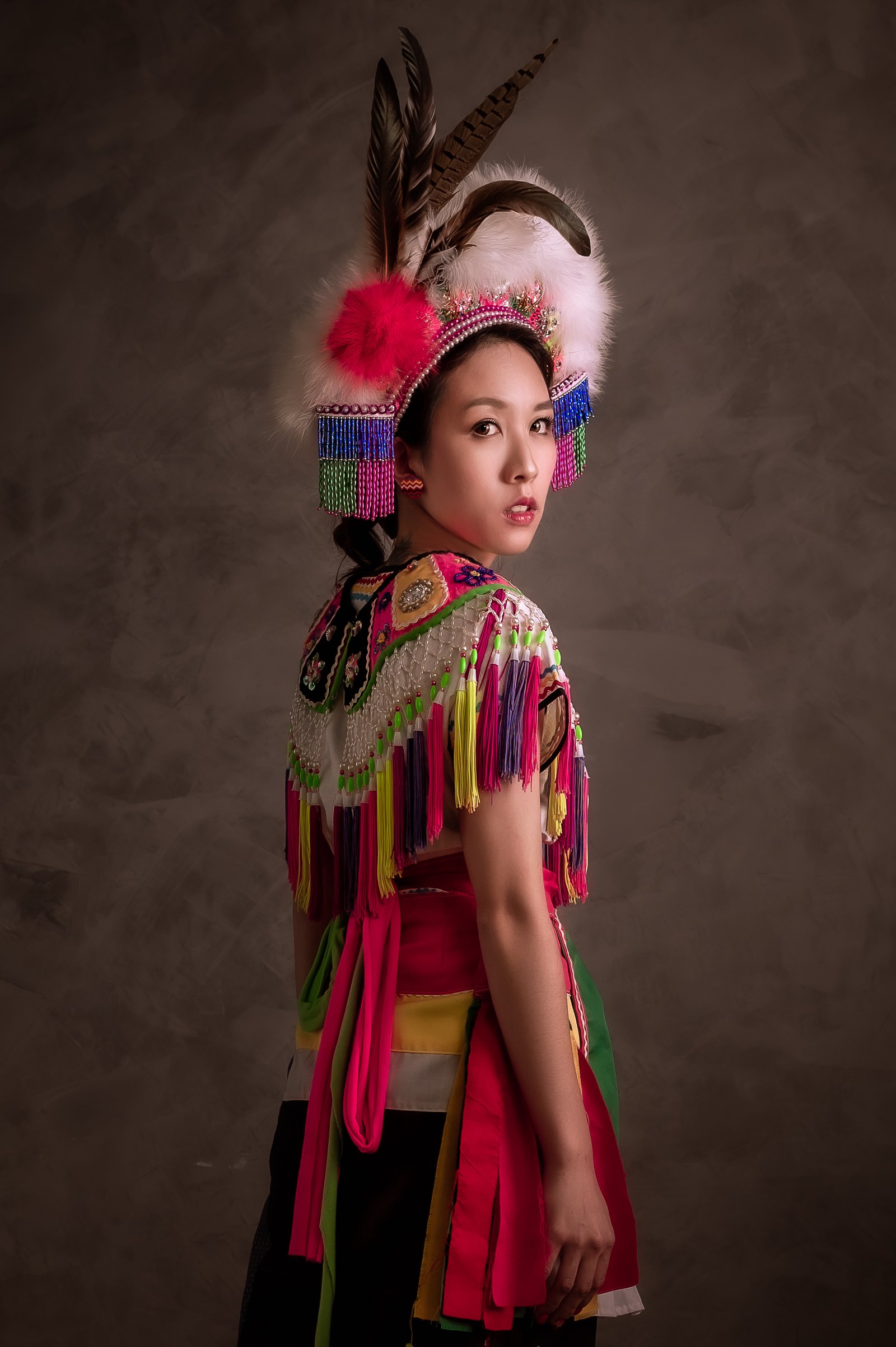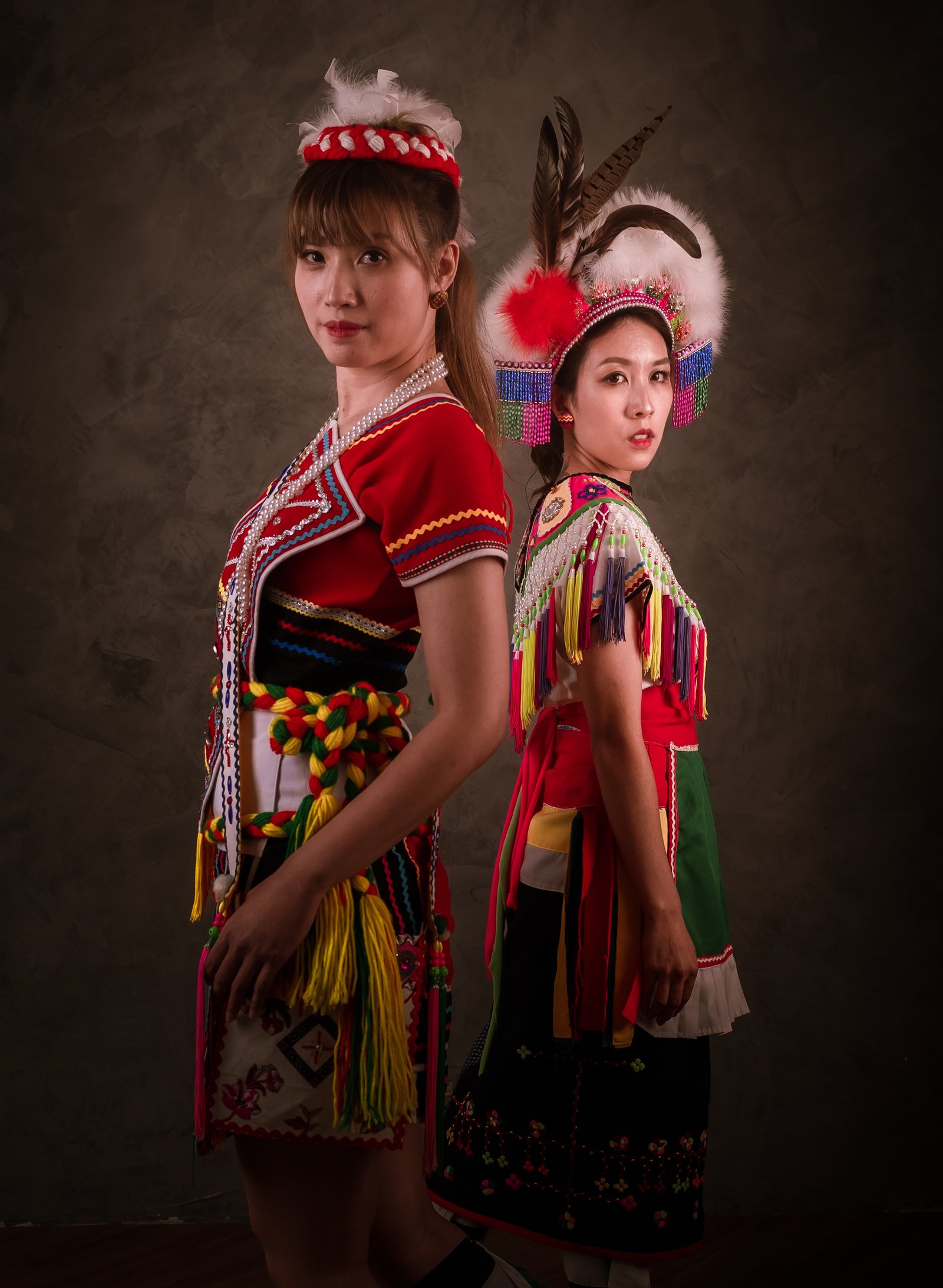 Portrait of Amies women of Taiwanese aborigines wearing traditional costumes.