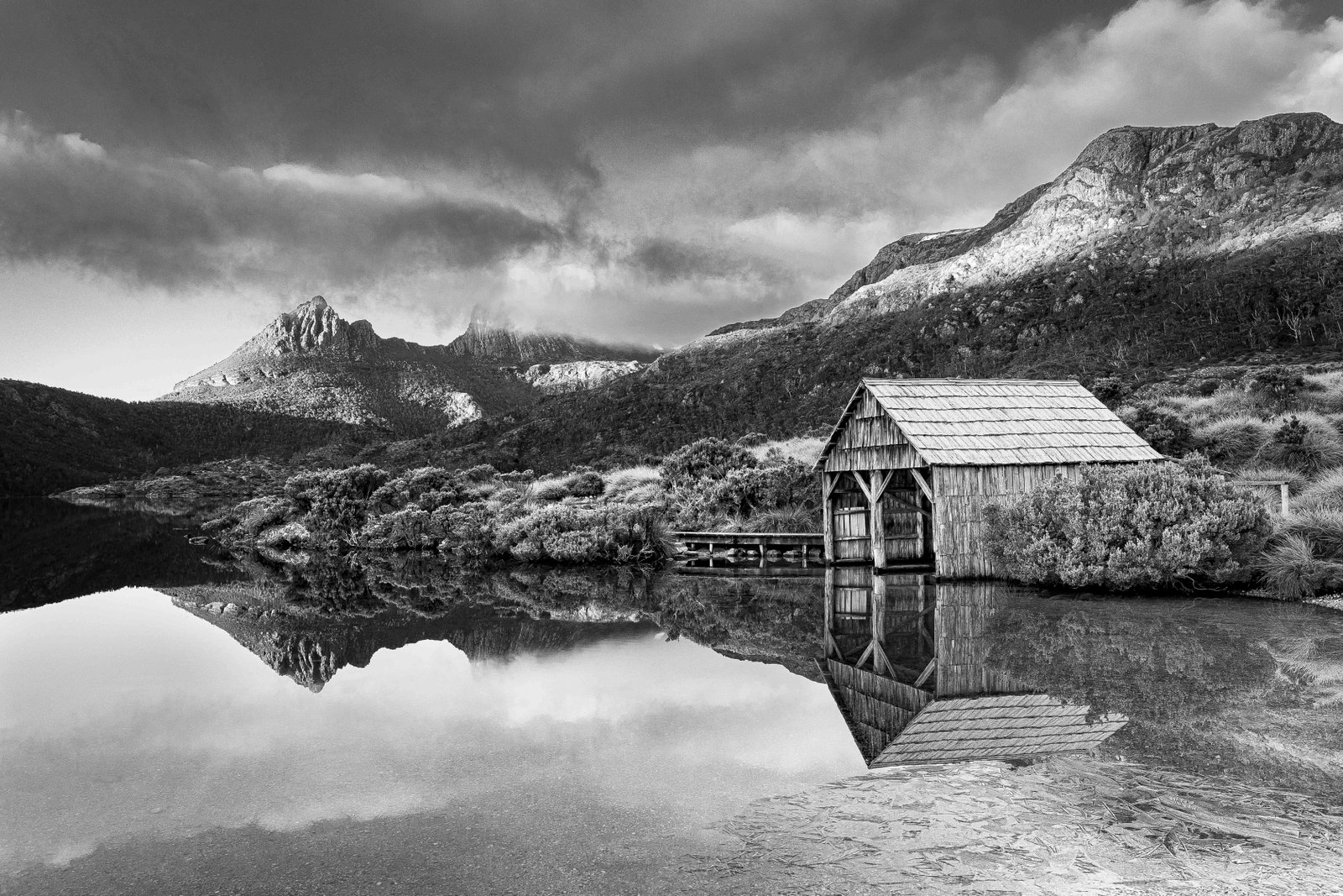 A chilly and calm morning of minus 1degree with ice crusted on the water was perfect photo condition for photographing Cradle Mountain and boat shed in Tasmania Australia. I was fortunate with conditions as the mountains are often shrouded in cloud and not visible.