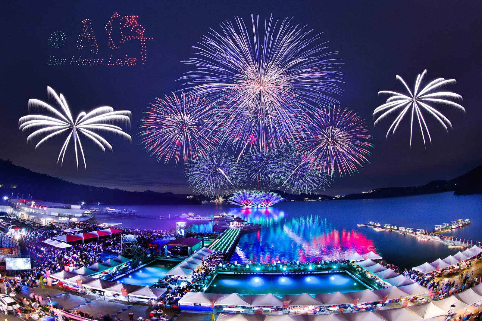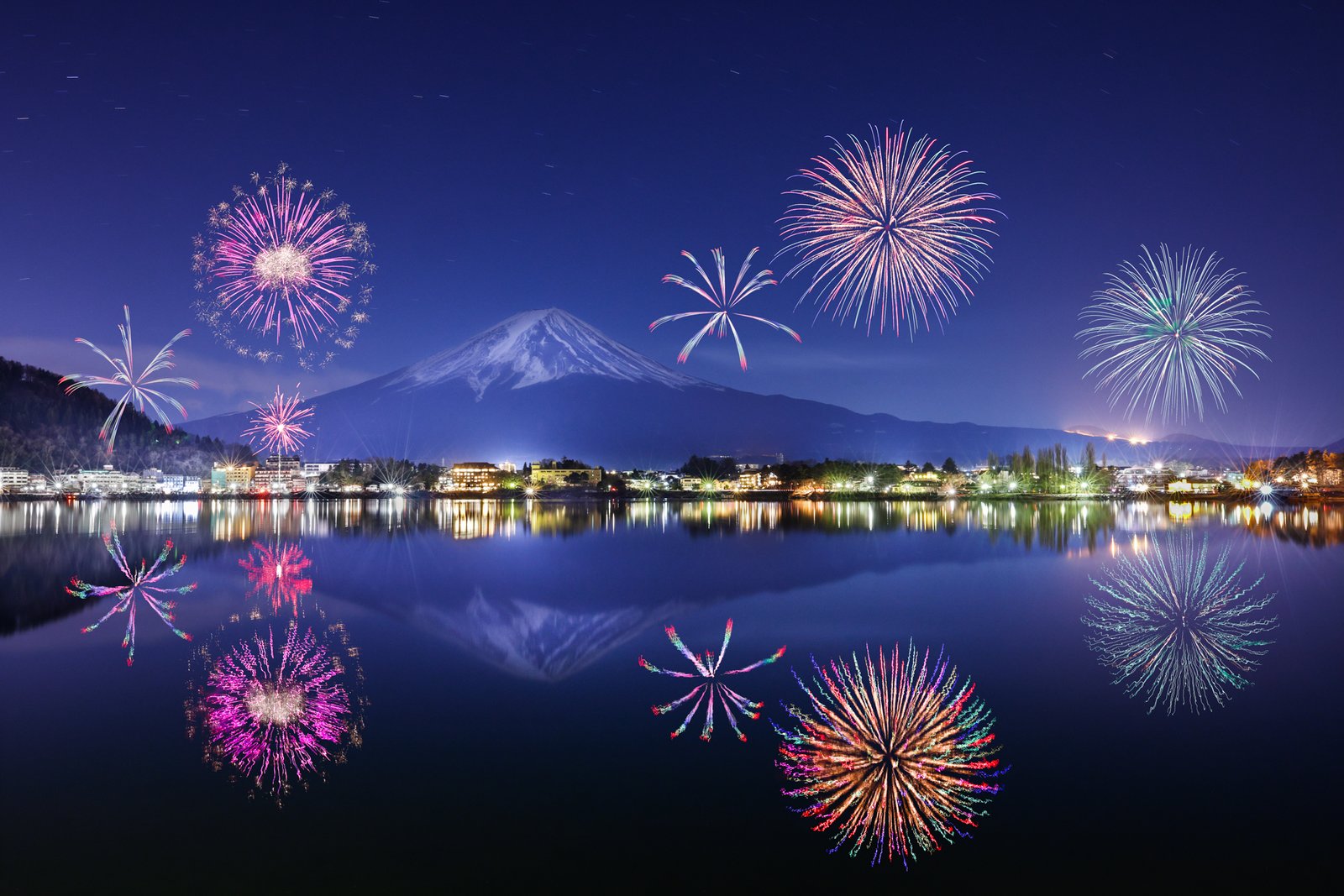Use the long exposure of the camera to shoot the trajectory of the fireworks, and the beautiful and brilliant fireworks bloom in the sky.