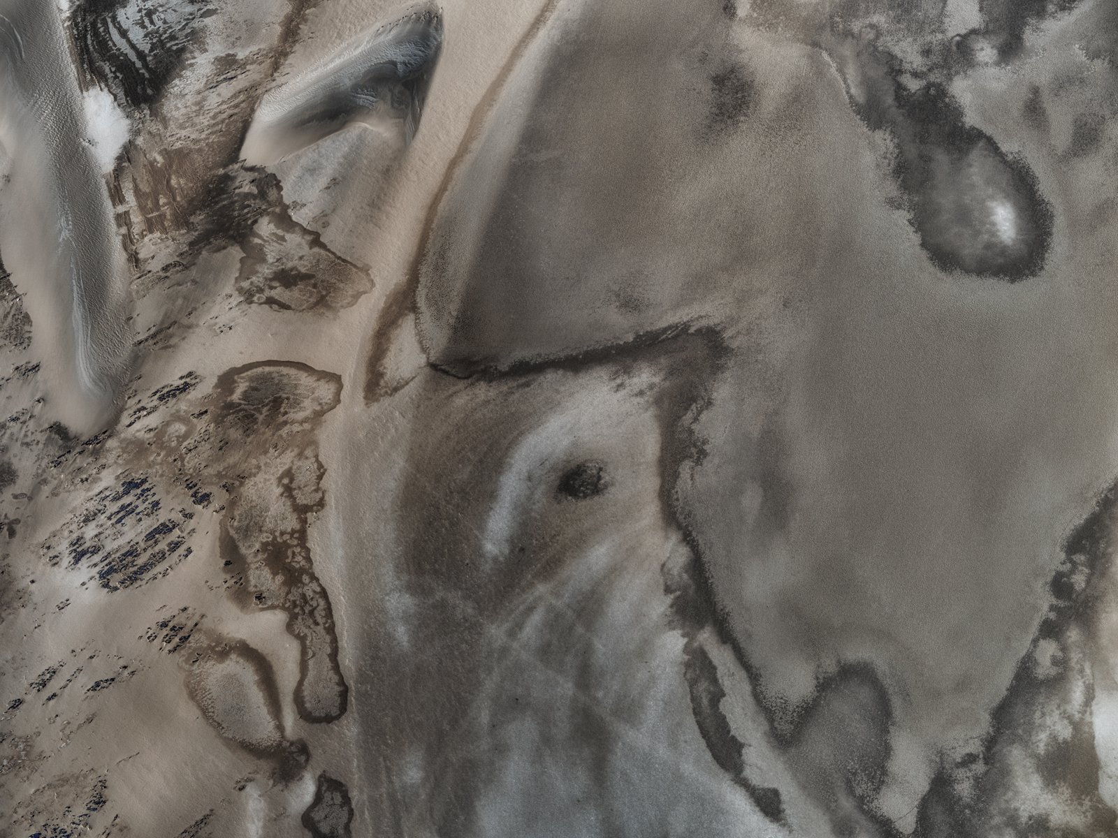 poetry of silence is an ongoing work of abstract aerial desert photography realized in the namib desert and it's surroundings. poetry of silence XXXII was created in the remote aerea of the northern namib. the pictures were taken with a medium format camera from about 1500 meters over the ground flying with a helicopter. The Namib Desert is often referred to as the world’s oldest desert. It has been in existence for some 43 million years, remaining unchanged in it’s present form for the last 2 million years. Its name is derived from the Nama language, implying “an area where there is nothing.”