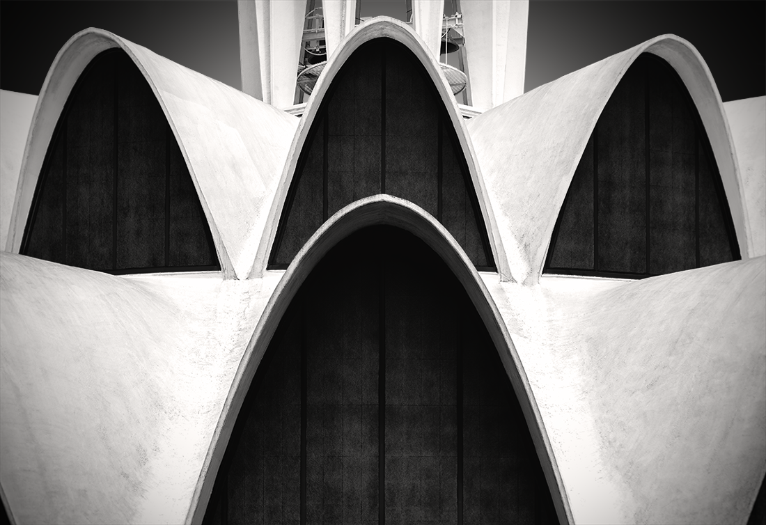 While visiting family in St. Louis last year, I took the opportunity to explore the city’s striking architecture through my lens. This image captures the Abbey Church of St. Mary and St. Louis — a modernist masterpiece designed by Gyo Obata and completed in 1962. Its sweeping curves and raw concrete surfaces created a strong visual foundation, but it was the play of light and shadow that truly stood out. I chose to work in black and white to emphasise these contrasts, using tonal edits to draw out the deep textures and sculptural lines of the structure. The result is an image that highlights the church’s bold geometry and quiet drama in a timeless monochrome palette.