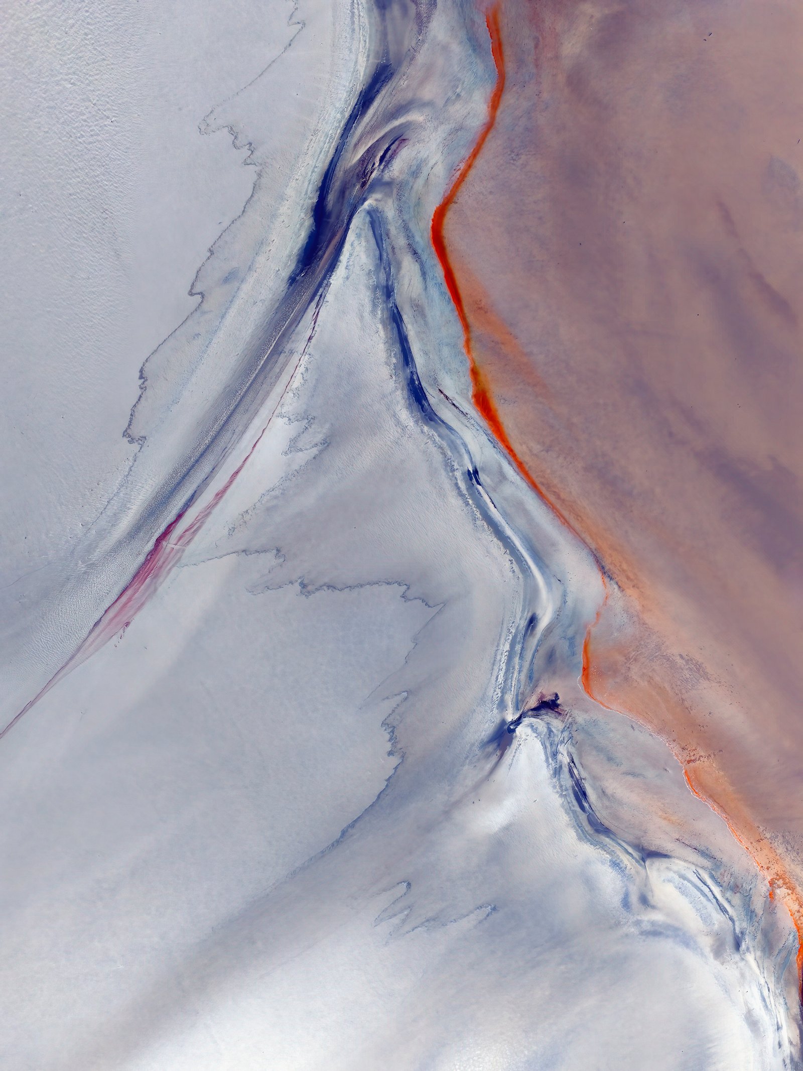 An abstract aerial capture of a salt lake on the Yorke Peninsula, South Australia.