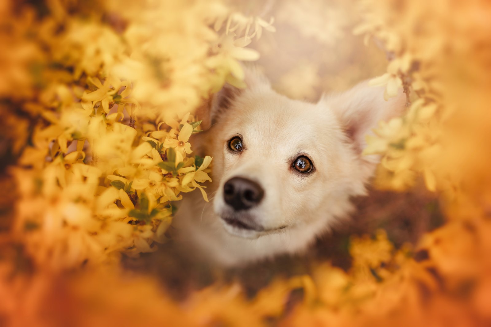 Follow the flower rainbow. This series of photograph is an explosion of colours. I love how colourful and playful the nature is and how well it suits the pets in it. The main focus of this series is to use complementary colours to each dogs appearance.